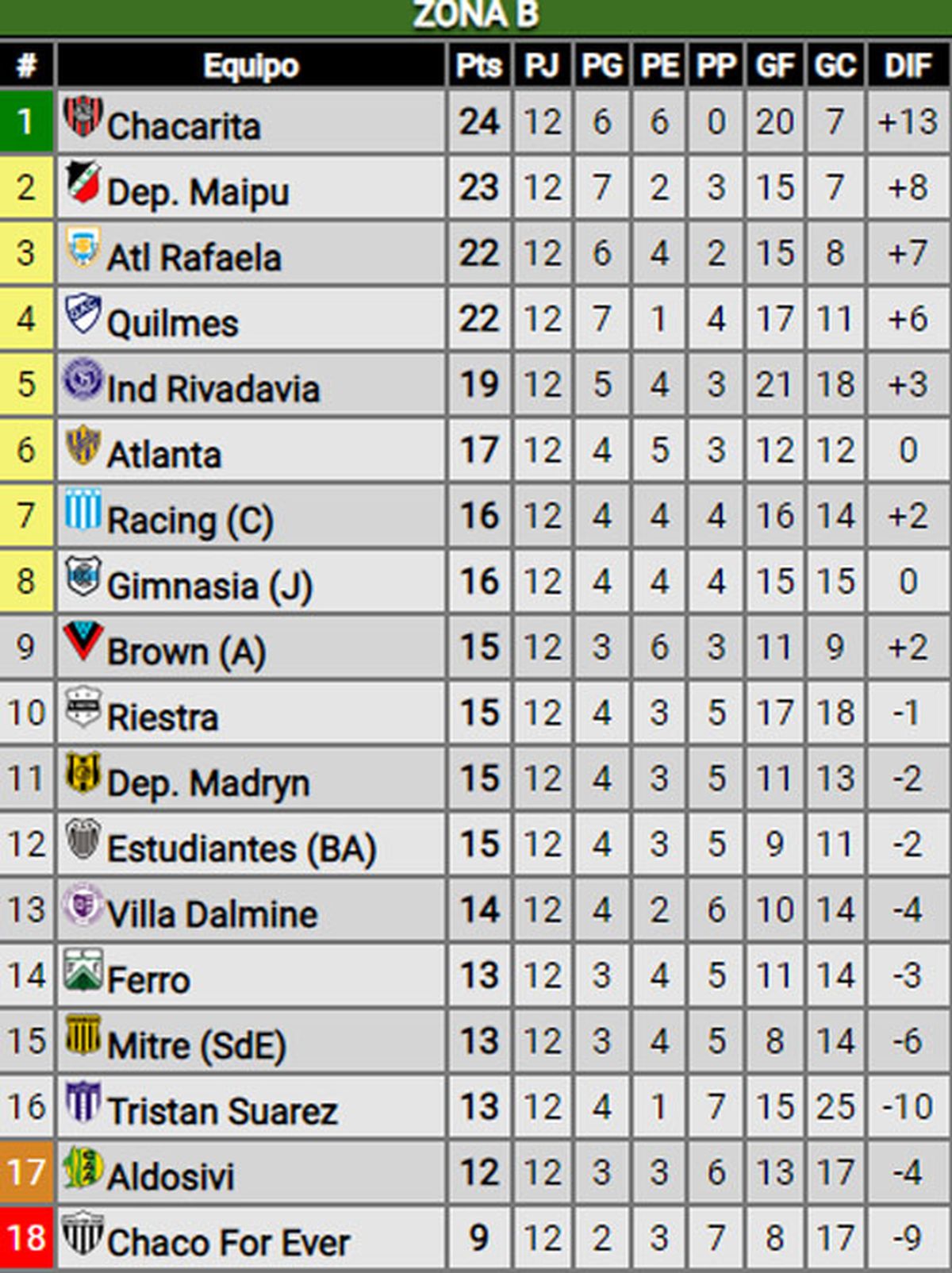 El sábado, Independiente Rivadavia igualó 0-0 en su visita a Brown de Adrogué y el Deportivo Maipú también rescató un punto de visitante ante Estudiantes de Buenos Aires (0-0).