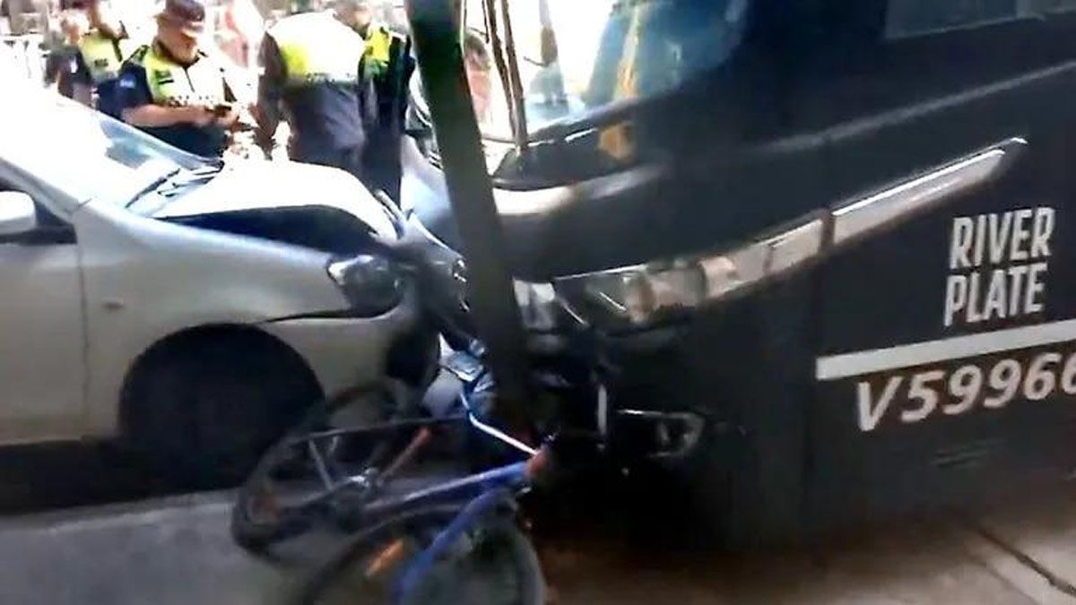 Es que el colectivo del Millonario chocó vallas, autos y motos estacionados en las inmediaciones del hotel donde concentra el equipo orientado por Martín Demichelis, a pocas horas del comienzo del encuentro.