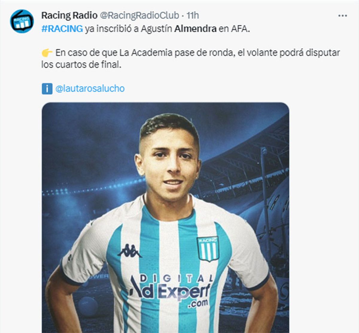 Agustín Almendra es hincha de Racing