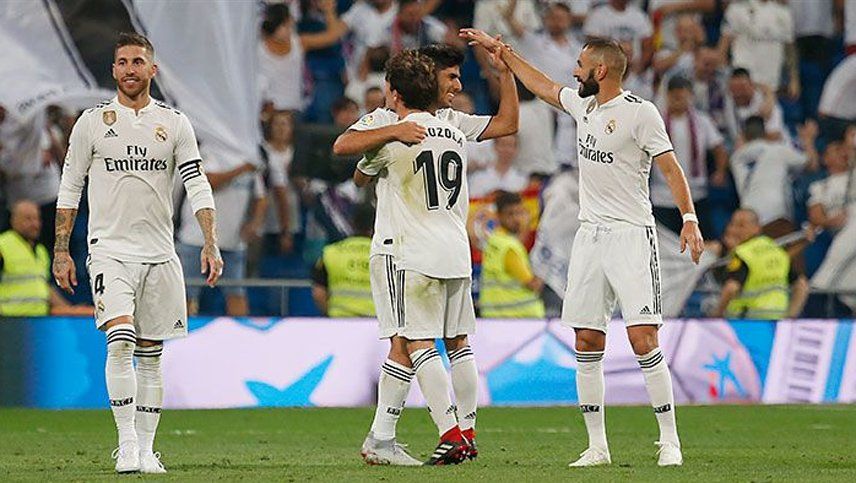 Real Madrid: Thibaut Courtois - Dani Carvajal, Sergio Ramos, Raphael Varane, Marcelo - Marcos Llorente, Toni Kroos, Luka Modric - Lucas Vázquez, Vinicius, Karim Benzema. DT: Santiago Solari (ARG).