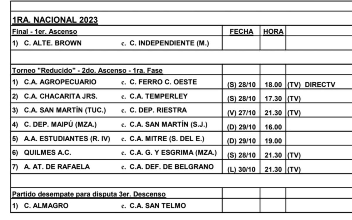 El primer equipo en entrar en acción será Gimnasia y Esgrima, que jugará ante Quilmes, de visitante, el próximo sábado 28 de octubre, desde las 21.30, con TV de TyC Sports.