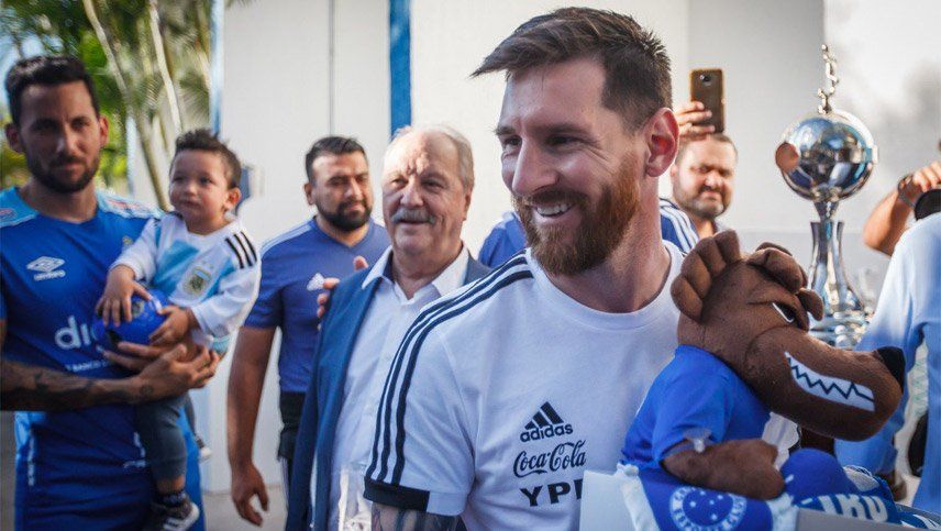 Tal como sucedió durante su estadía en Río de Janeiro, donde fue muy bien recibido por Fluminense, ahora la Selección recibió el cariño de los torcedores de Belo Horizonte y la hospitalidad de Cruzeiro, quien recibió al conjunto de Lionel Scaloni con un kit alusivo que le entregó Romero a Messi.