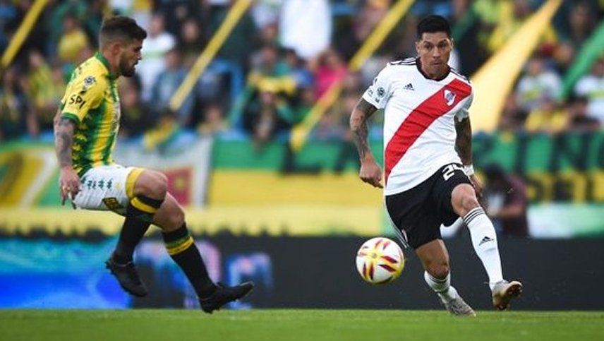 Enzo Pérez abrió el marcador en el partido entre River y Aldosivi, con un certero cabezazo que, justamente, conectó después de un centro de otro mendocino: Fabricio Angileri.