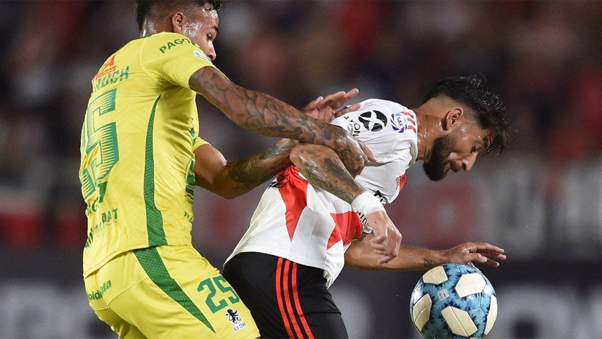 River 1: Franco Armani; Lucas Martínez Quarta, Robert Rojas y Javier Pinola; Gonzalo Montiel, Enzo Pérez y Milton Casco; Nicolás de la Cruz e Ignacio Fernández; Ignacio Scocco y Matías Suárez. DT: Marcelo Gallardo.