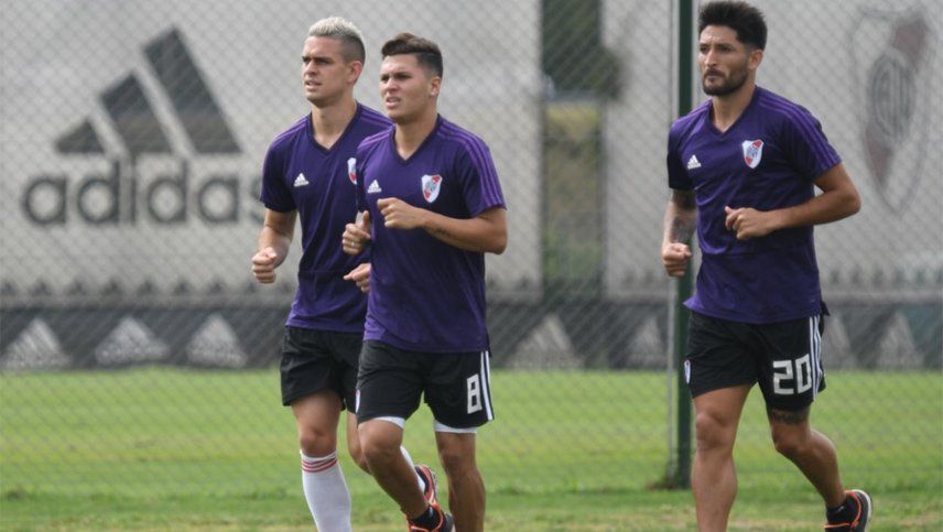 River: Franco Armani; Gonzalo Montiel, Lucas Martínez Quarta, Javier Pinola y Milton Casco; Ignacio Fernández, Enzo Pérez y Exequiel Palacios; Juan Fernando Quintero; Rafael Santos Borré y Lucas Pratto. DT: Marcelo Gallardo.