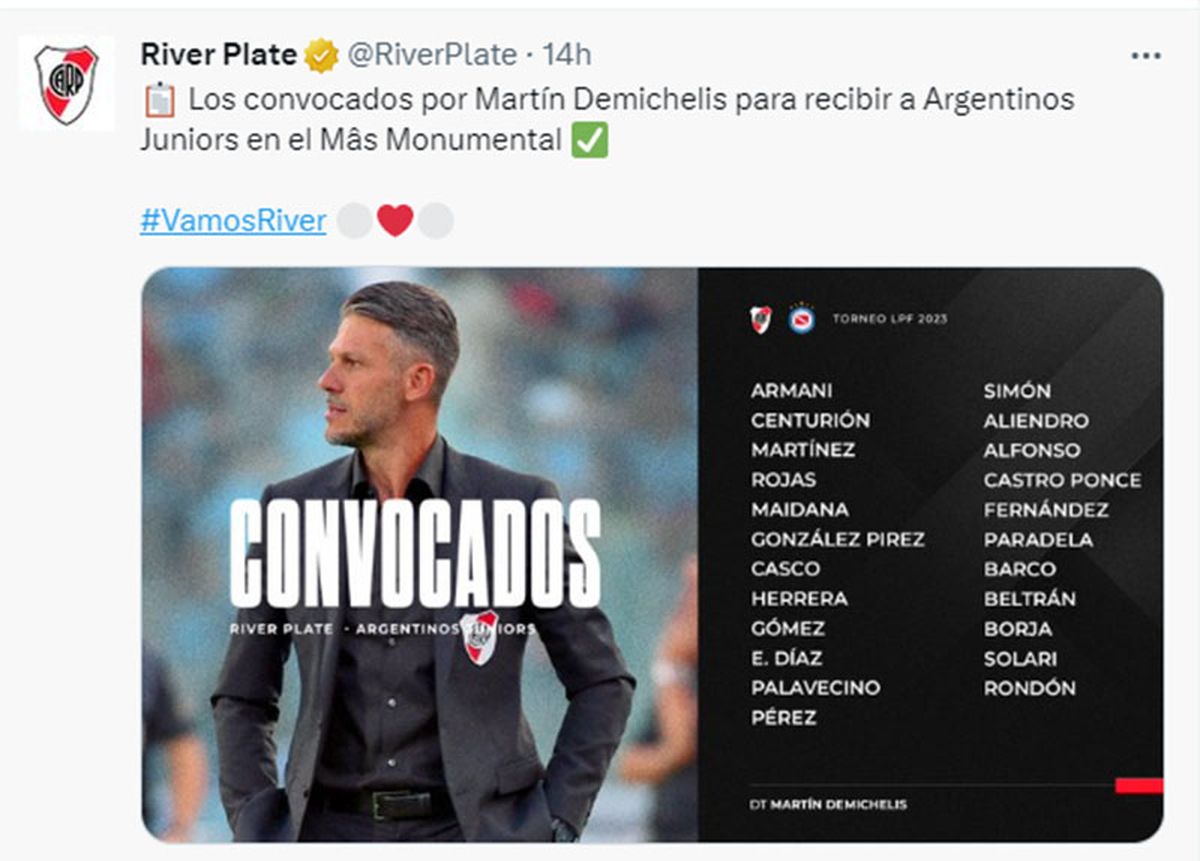 River Plate recibirá este domingo a Argentinos Juniors por la tercera fecha de la Liga Profesional en un estadio Más Monumental que promete estar repleto, con el condimento del homenaje previo al partido para los campeones mundiales de 1978, 1986 y 2022 que lucieron la camiseta del club, entre ellos Daniel Passarella.