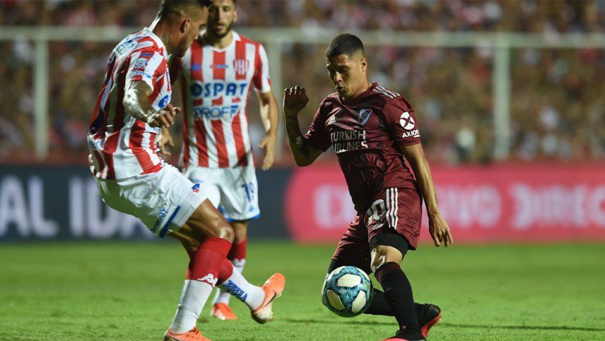 Walter Bou, una de las figuras, puso arriba a Unión tras cabecear con precisión en el área pero la respuesta de River fue rápida y contundente, primero a través de Nacho Fernández, también de cabeza, y luego con el paraguayo Robert Rojas tras un córner ejecutado por Juanfer Quintero.