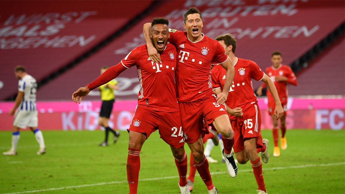 Robert Lewandowski marcó a los 40 del primer tiempo, y a los 5, 40 y 48 minutos de la parte final para Bayern Munich, campeón de la Copa de Campeones y la Supercopa de Europa, mientras que para Hertha Berlín anotaron el colombiano Jhon Córdoba, a los 14, el brasileño Matheus Cunha, a los 26 y el alemán Jessic Ngankam, a los 43 del complemento, respectivamente.