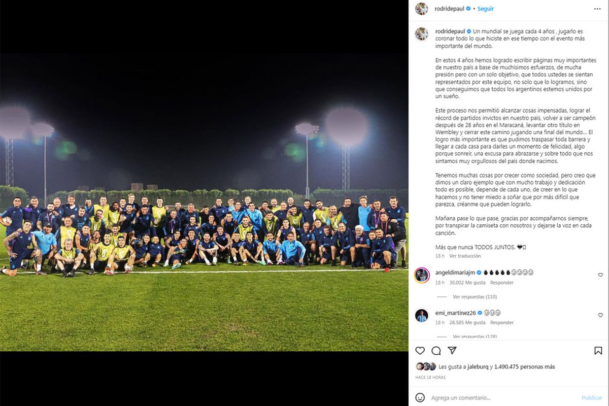 Como no podía ser de otra manera, Rodrigo De Paul mostró una vez más su lado más humano y dejó unas sensaciones increíbles con un posteo imperdible