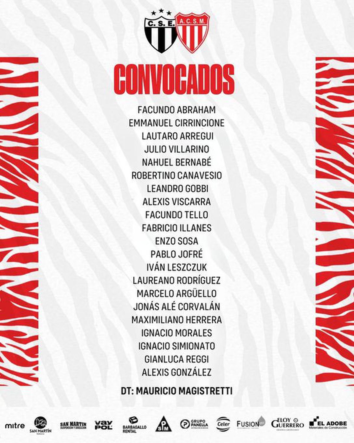 Atlético San Martín: Facundo Abraham; Lautaro Arregui, Julio Villarino,Robertino Canavesio y Nahuel Bernabé; Facundo Tello, Fabricio Illanes, Laureano Rodriguez, y Jonás Corvalán; Ignacio Simionato y Maximiliano Herrera. DT: Mauricio Magistretti.
