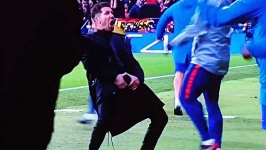 El Colchonero conseguía una buena ventaja de cara a la revancha (terminó ganando 2-0) y su entrenador, el argentino Diego Simeone, no pudo contenerse y festejó uno de los goles de su equipo de manera enérgica y despertando la polémica.