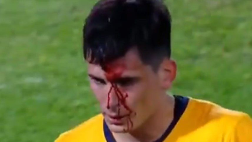 Se chocó con el codo de Izquierdoz y sufrió un corte arriba de la frente en el cuero cabelludo, en donde le salió bastante sangre. Por eso le cambiaron la ropa y volvió a jugar.