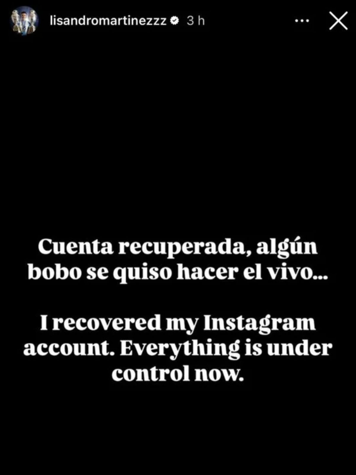 Posteriormente, fue el propio Lisandro Martínez el que anunció que pudo recuperar su cuenta en la red social mediante una nueva historia.