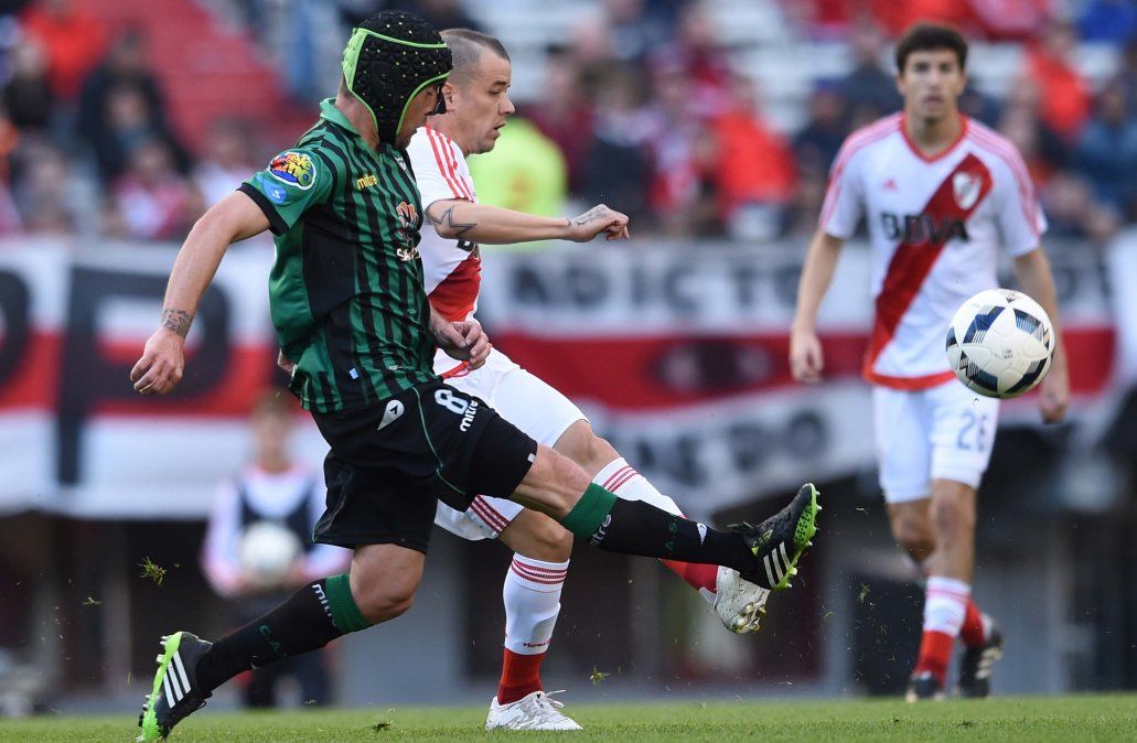 Matías Fissore, jugador de San Martín de San Juan, salió al encuentro que su equipo disputó ante River, en el estadio Monumental, con un particular look.