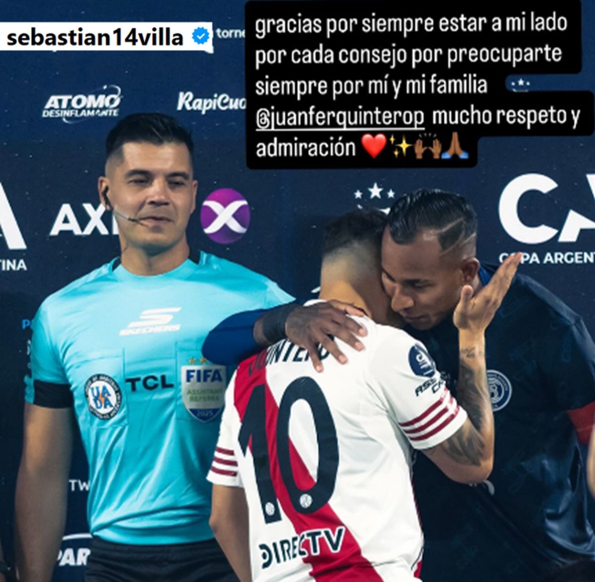 Este domingo, mientras resuenan las repercusiones del partido del viernes en Córdoba, Villa hizo una publicación en redes sociales con un mensaje de "respeto y admiración" para su compatriota.