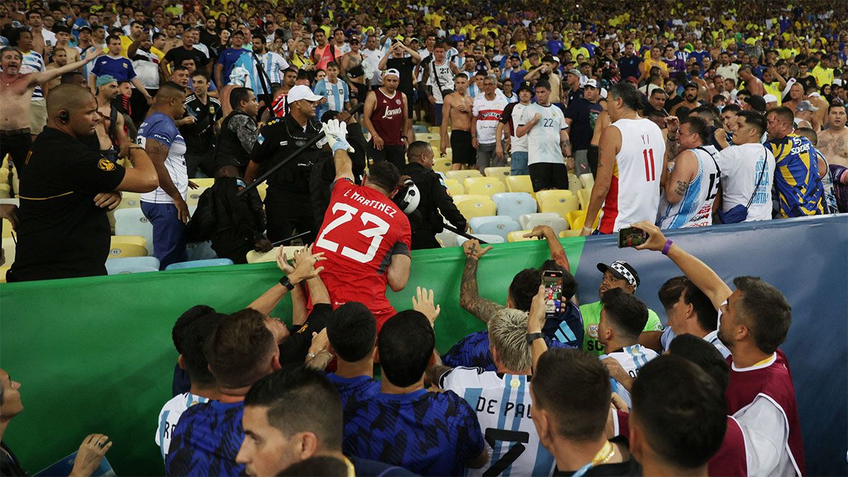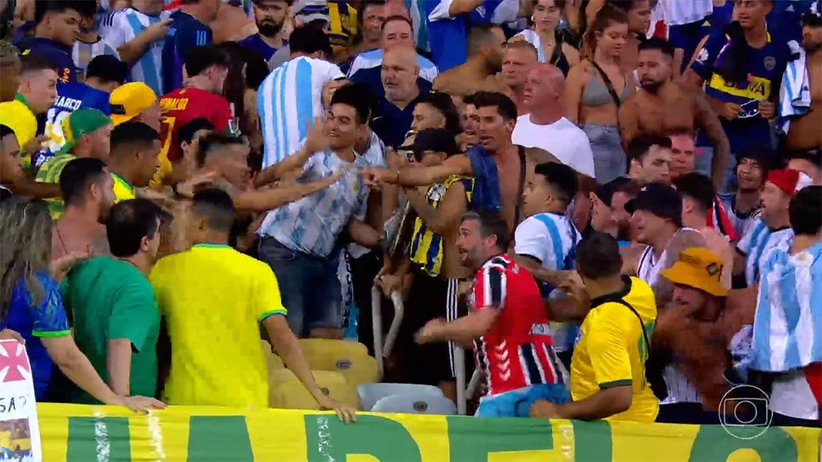 A pesar de este incidente previo, los argentinos siguieron con el repertorio de canticos y los brasileños respondieron con abucheos en la previa de lo que es el partido número 110 en el historial entre ambos.