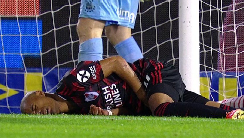 El futbolista de River Plate Nicolás de La Cruz convirtió el cuarto gol de su equipo en la goleada ante Huracán pero se llevó la peor parte con un terrible golpe.