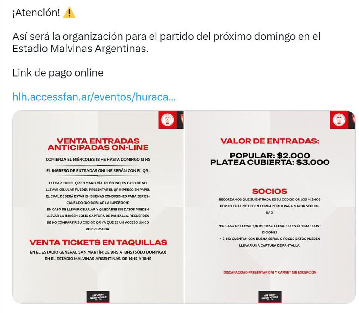 El Ministerio de Seguridad confirmó la ubicación que tendrán los hinchas. Los simpatizantes del Globo se ubicarán en el sector norte, mientras que los del Albirrojo ocuparán la zona Sur del Malvinas Argentinas. Sólo se ocuparán ambas populares y la platea techada, ya que la descubierta será utilizada como pulmón.