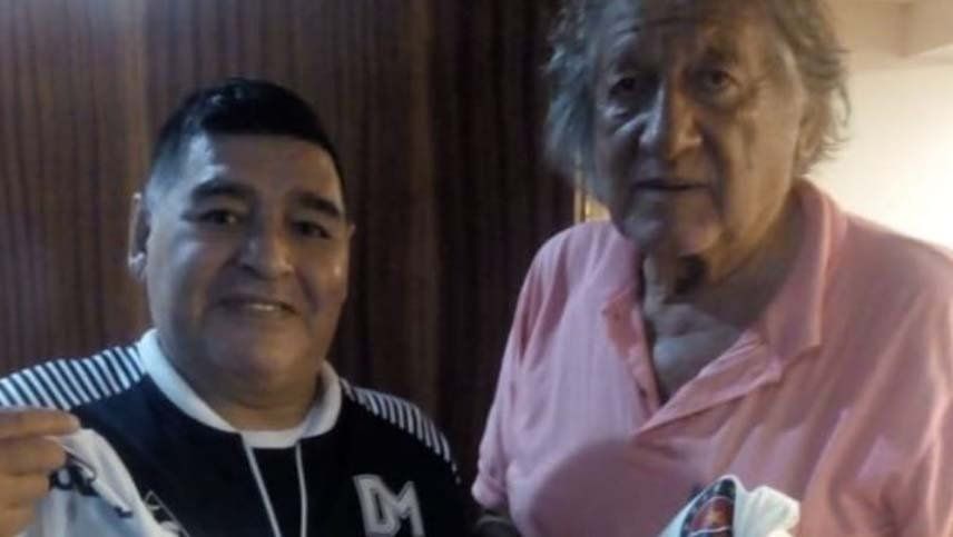 Carlovich llevó una camiseta de Central Córdoba al encuentro y Diego la firmó y puso la frase: "Al Trinche, que fue mejor que yo".