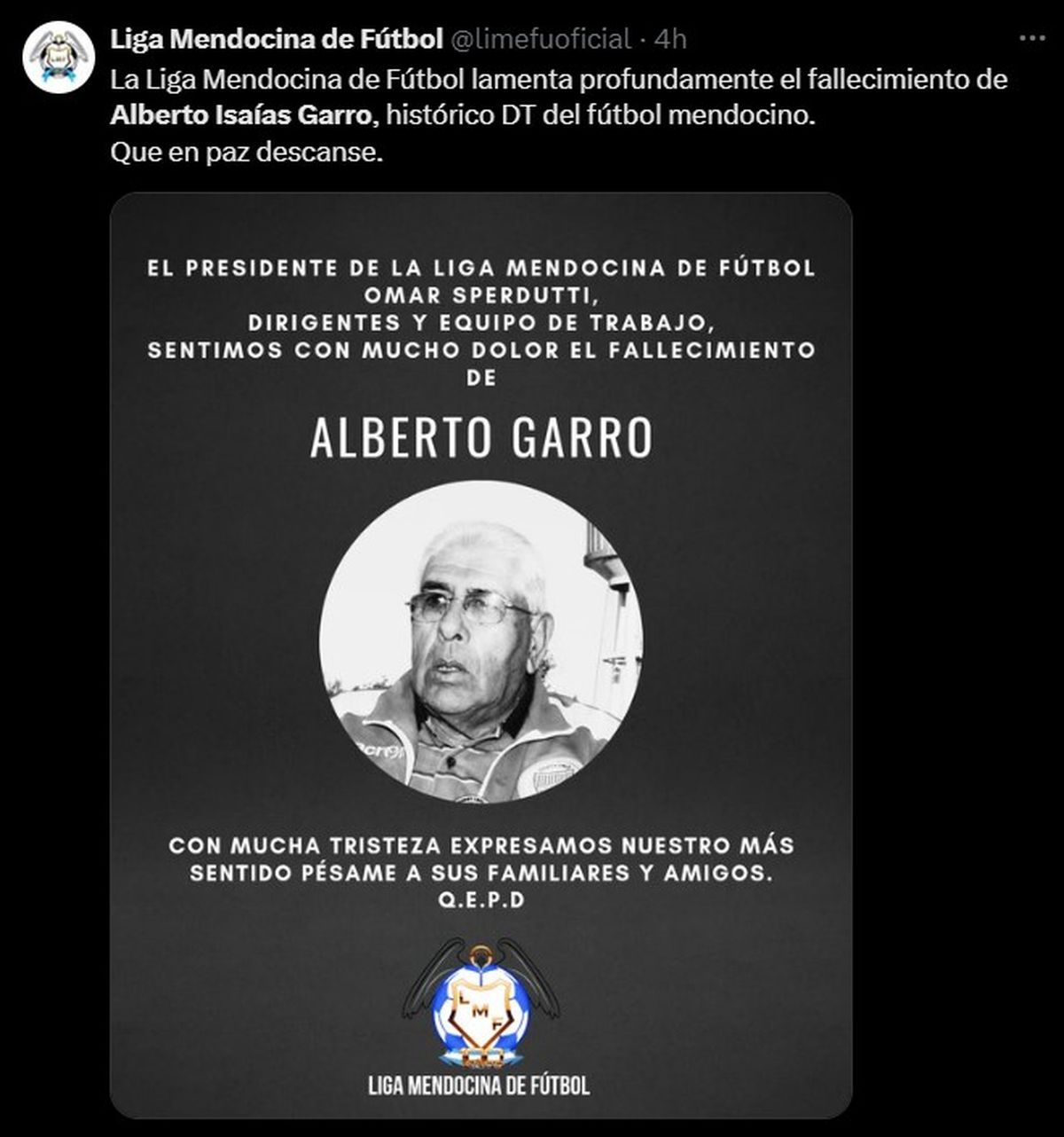 Tristeza en el fútbol de Mendoza por el fallecimiento del querido Alberto Isaías Garro