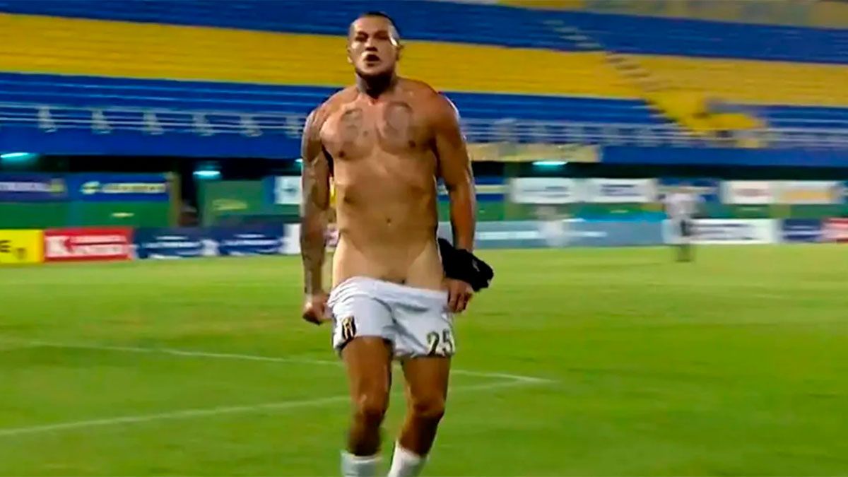 El futbolista, que hizo Inferiores en Boca y River, selló el tercero de Guaraní y corrió hasta las cámaras de televisión sacándose la camiseta, el top con el GPS y se bajó el short por debajo de la ingle hasta quedar casi al desnudo frente a los ojos de todos.