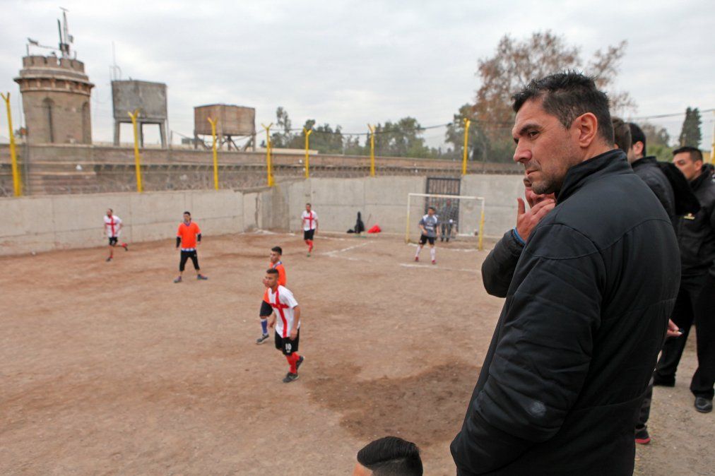 Jugadores del plantel de fútbol de Huracán Las Heras acompañados por su director técnico Esteban "Bichi" Fuertes y sus ayudantes, Gonzalo Torres y Armando Barrionuevo, visitaron el penal de San Felipe y jugaron partidos con los internos.