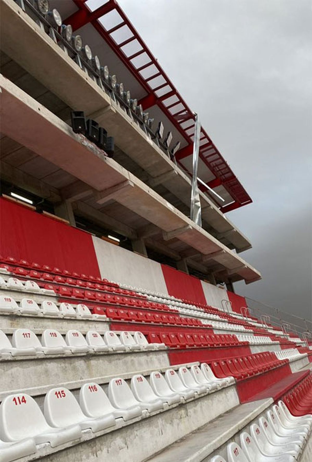 El problema fue a raíz del desprendimiento de una canaleta de desagüe que a raíz de los fuertes vientos que azotaron esta tarde a la ciudad quedó pendiendo sobre esas graderías.