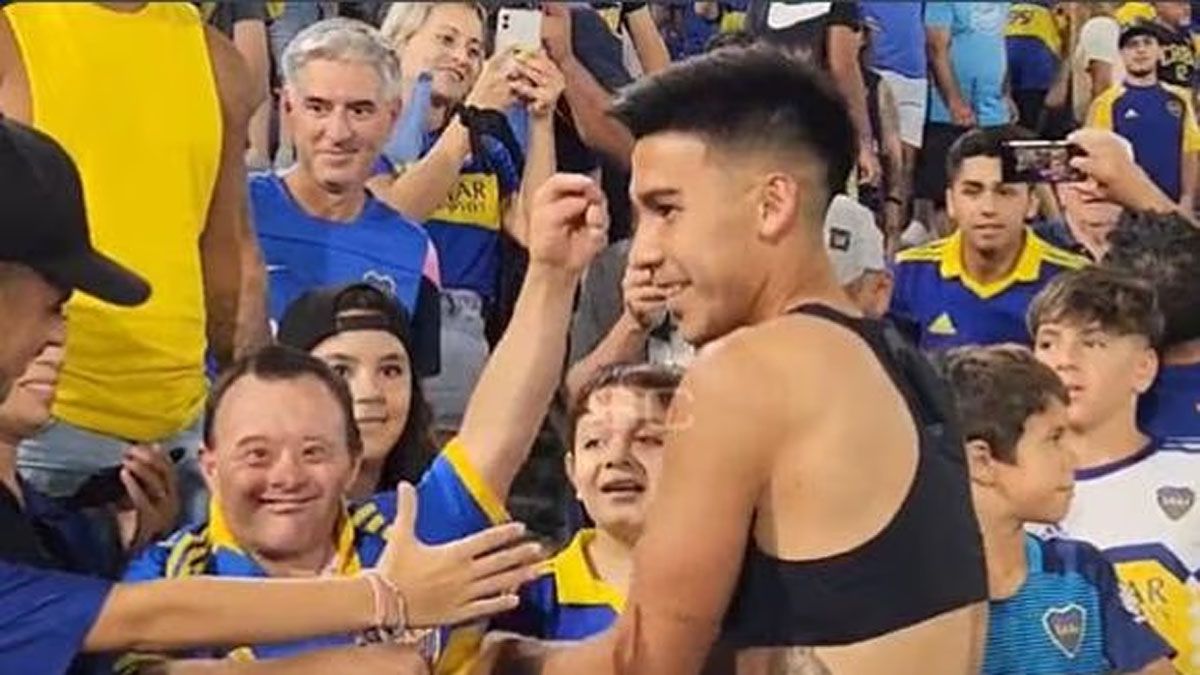 Apenas terminó el partido, donde el Xeneize no jugó bien, el mediocampista xeneize fue a la platea baja del estadio y le cumplió el sueño a un fanático que lo estaba esperando con una bandera.