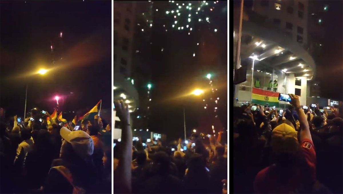 El cielo de la zona sur de la ciudad de La Paz se iluminó durante la madrugada con los estruendosos fuegos artificiales que lanzaron los hinchas bolivianos, según videos difundidos en las redes sociales.