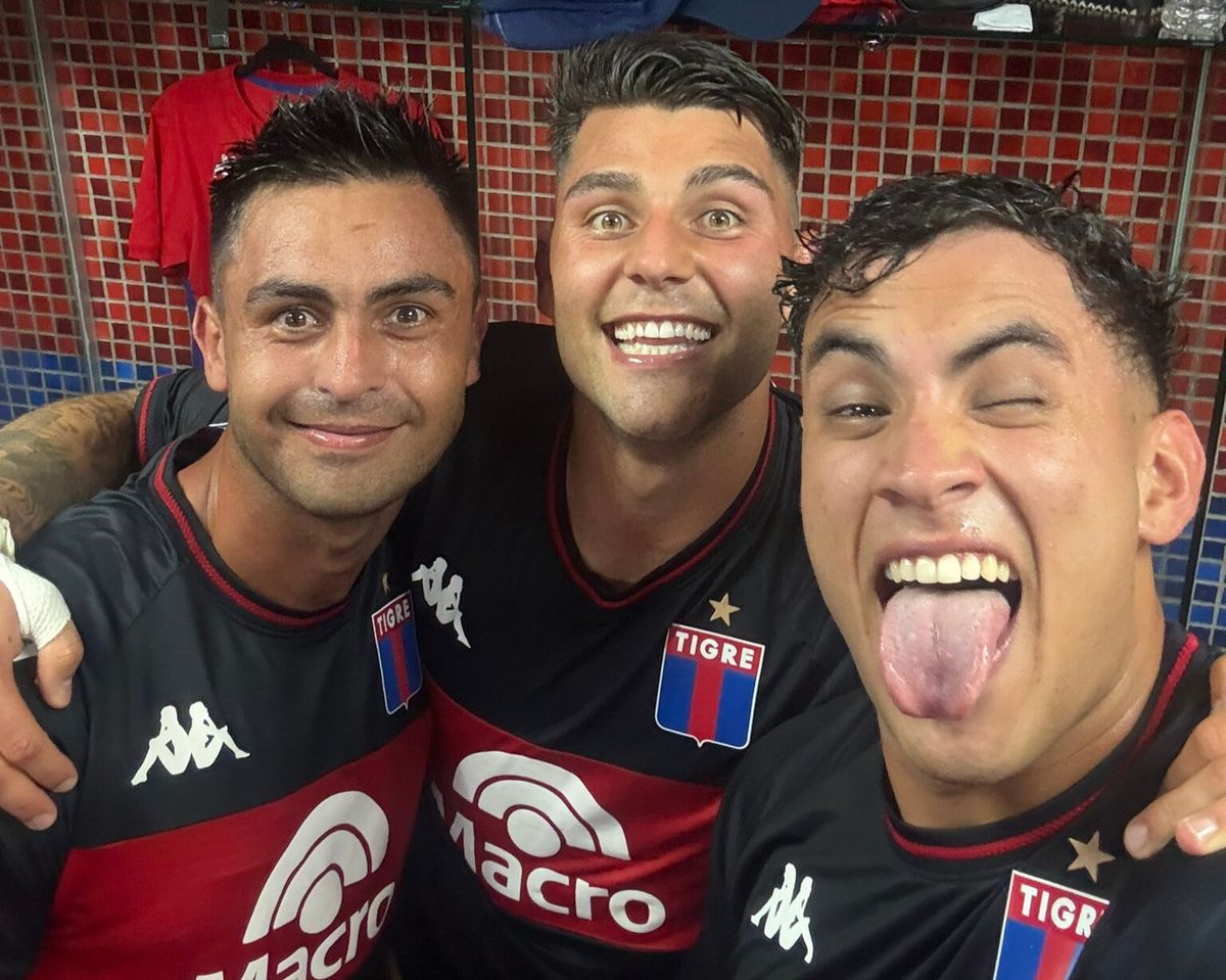 "¿El tercero? Del Pity Martínez", indicaron las redes sociales de Tigre, mientras que el mendocino compartió una imagen del festejo en el vestuario y envió un mensaje para sus compañeros: "Gracias a ustedes por recibirme de la mejor manera y hacer que me sienta feliz de nuevo".
