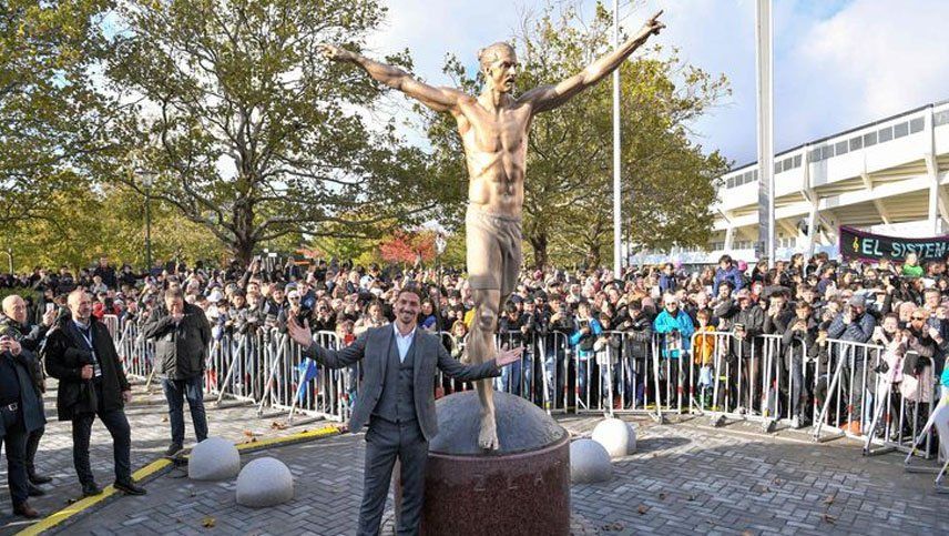 Ante una multitud, Ibra descubrió oficialmente la estatua de 3 metros de alto y casi media tonelada de peso cuya base está hecho de oro.