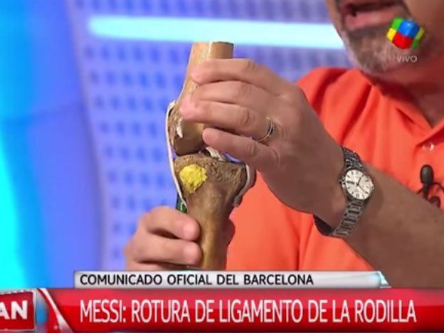 Ayudado por el modelo a escala de una rodilla, el doctor Claudio Santamaría explicó desde el estudio de América Noticias cómo se produjo la rotura y cuál de los ligamentos fue el afectado. “El que se rompió es el que une el fémur con la tibia del lado interno. Se cortó y por eso la rodilla tiene lo que llamamos ‘el signo del bostezo’”, expresó.