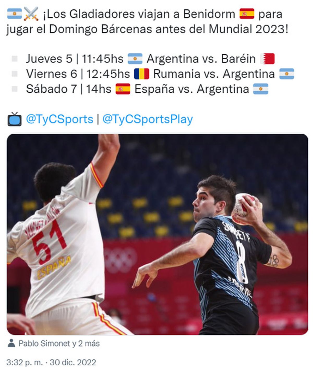 El Selección argentina de balonmano masculino disputará la semana entrante un torneo amistoso en Benidorm, España, como etapa de preparación previa al comienzo del Mundial de handball, programado par entre el 11 y 29 de enero en las sedes Polonia-Suecia.