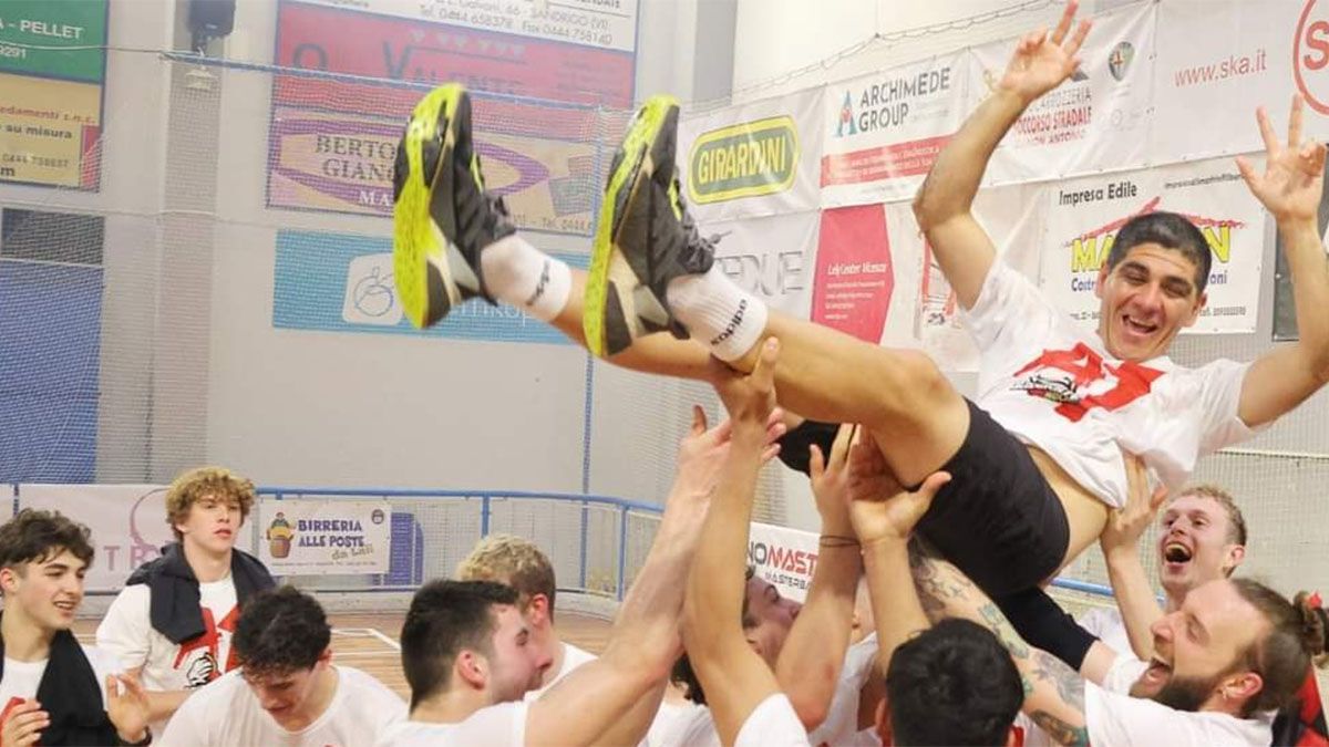 La felicidad de Néstor Perea tras lograr el ascenso con el Breganze