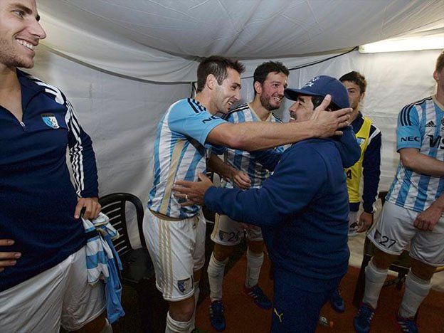 Diego Maradona estuvo presente en el triunfo del seleccionado argentino ante Canadá por 2 a 1 en la tercera fecha de la Liga Mundial.