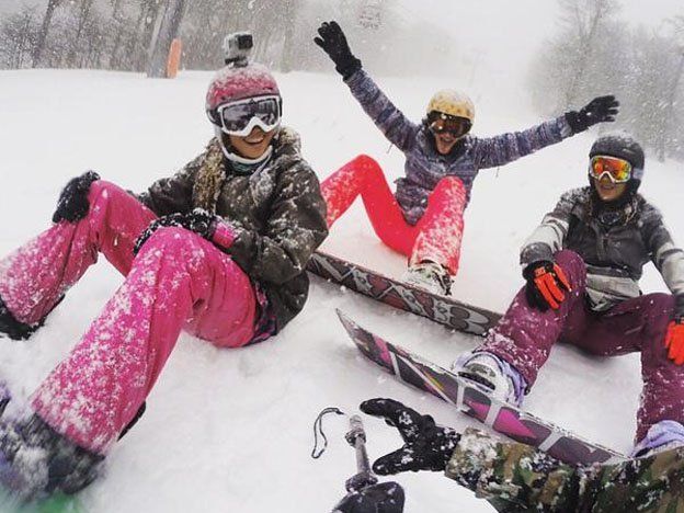 Luciana Aymar disfruta de unas merecidas vacaciones junto a sus excompañeras Delfina Merino y Martina Cavallero. El snowboard no es nada fácil para la rosarina. Videos y fotos