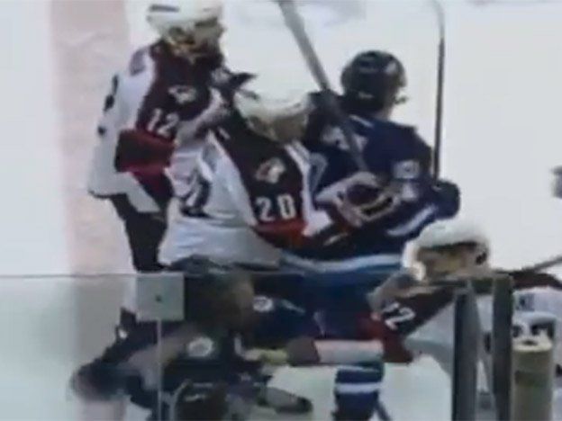 Ryan Olsen, jugador de los St John´s IceCaps canadienses, se vio envuelto en una terrible pelea y como si esto fuera poco, recibió el impacto del disco en la cara. Video.
