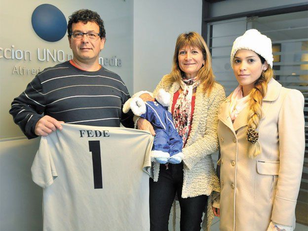 Después del logro. Gustavo y Sandra, los papás de Federico; Celeste Barrera (la novia del arquero campeón del mundo) y su bebé Santino compartieron en UNO la felicidad por el título.