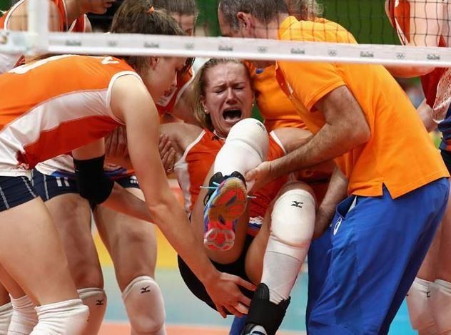 La voleibolista Maret Balkestein se retiró llorando del choque entre Holanda y Estados Unidos por el vóley femenino en los Juegos Olímpicos de Río de Janeiro, debido a una fea lesión en su tobillo.