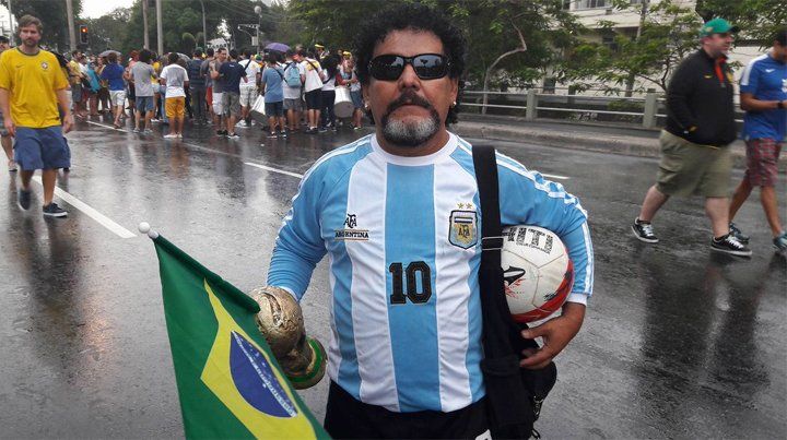 Los Juegos de Río están llegando a su fin, pero aún se respira el clima olímpico en las calles de Brasil. Una de las tantas perlitas que pudieron capturar los medios presentes en la máxima cita deportiva, fue un hombre disfrazado de Diego Maradona que se paseó por el Maracaná, para presenciar la final de fútbol entre Brasil y Alemania.