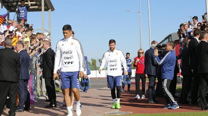 Más de medio millar de hinchas, entre niños rusos y viajeros argentinos, le dieron este lunes un baño de afecto a los jugadores de la Selección argentina, que bajo la bandera de Lionel Messi, disfrutaron de una jornada distinta a cinco días del debut ante Islandia, por el Grupo D del Mundial de Rusia.