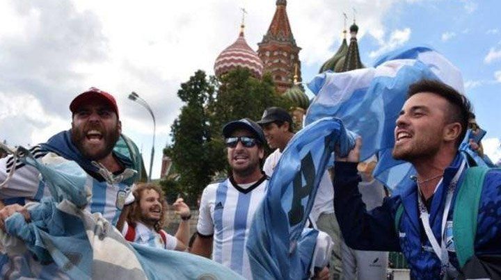 "Vamos, vamos, Argentina...", fue uno de los cánticos más entonados por los hinchas argentinos que llegaron en su gran mayoría a través del metro (subte) y bajaron en la estación Novokrestovskaya, pegada al estadio.