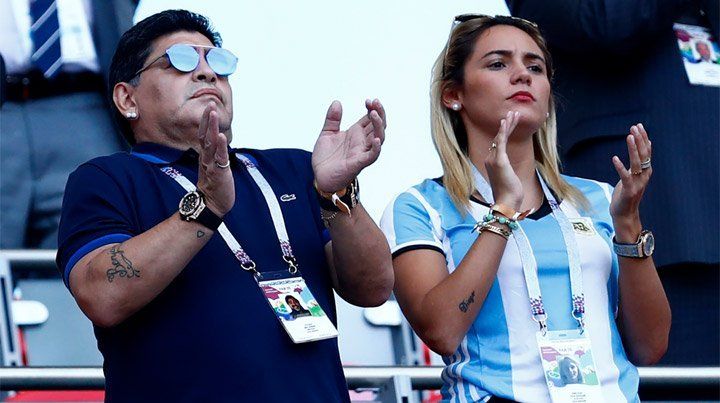 Diego Maradona volvió a sus andanzas y alentó a la Selección argentina, en una nueva presentación en el Mundial de Rusia.