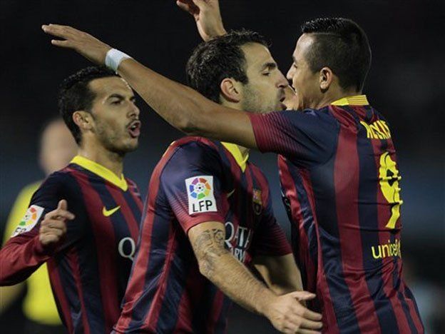 El chileno Alexis Sánchez (PT 9m.), el arquero Yoel, en contra (ST 3m.) y el español Cesc Fábregas (ST 9m.) marcaron los goles para el equipo catalán, vigente campeón del campeonato peninsular.
