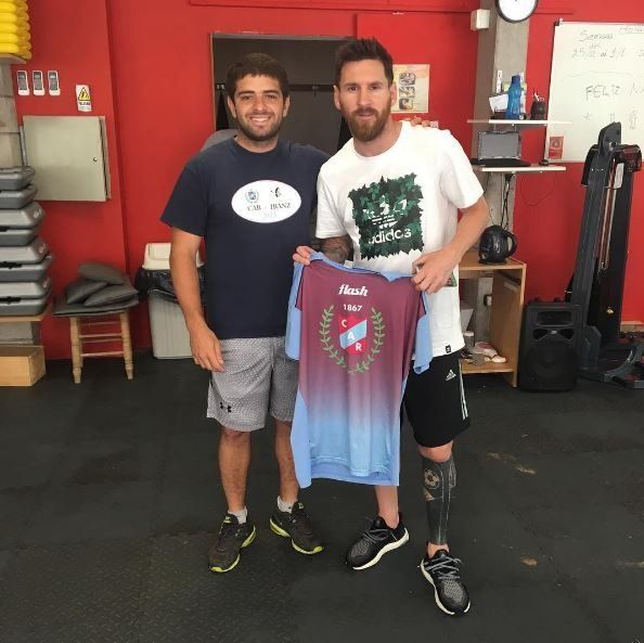 A su vez, el máximo goleador del seleccionado argentino de fútbol se prestó para una fotografía con la camiseta del club de rugby Plaza Jewell junto con el jugador Juan Nogués, quien escribió el siguiente texto en su cuenta oficial de la red social Instagram: "hoy me tocó entrenar a este pibe. Y se llevó la (camiseta) del más grande".