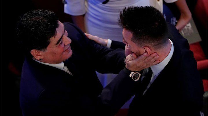 Messi y Maradona se cruzaron en octubre pasado en la alfombra verde de los premios The Best, evento que se llevó a cabo en Londres y allí el entrenador le dedicó un gesto cariñoso al futbolista tomándole la cara entre sus manos.