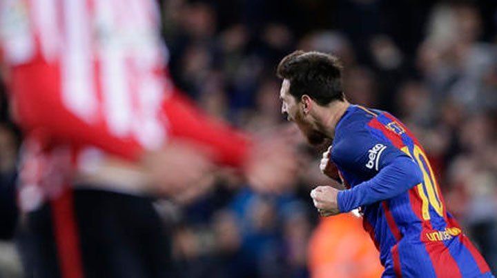 Messi concretó su genialidad con el remate con pie zurdo que ingresó en el ángulo inferior izquierdo del arquero Gorka Iraizoz (ST 33min) cuando el equipo catalán, defensor del título, buscaba el tercer gol para clasificar.