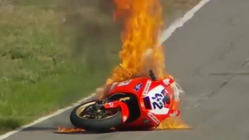 Cuando la moto número 42 tomó fuego, Medina rápidamente se bajó y se encuentra en buen estado.