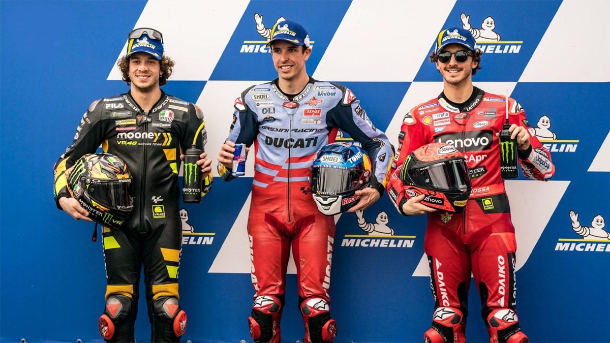 La marca italiana copó el podio de la clasificación con Marco Bezzecchi y el vigente campeón del mundo, Francesco Bagnaia, en el segundo y tercer puesto.