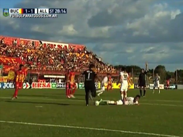 A los 28 minutos del segundo tiempo, sin sentido y con violencia, pisó a Marcos Pirchio y dejó a su equipo con nueve. Antes había sido expulsado Moisés por doble amarilla.